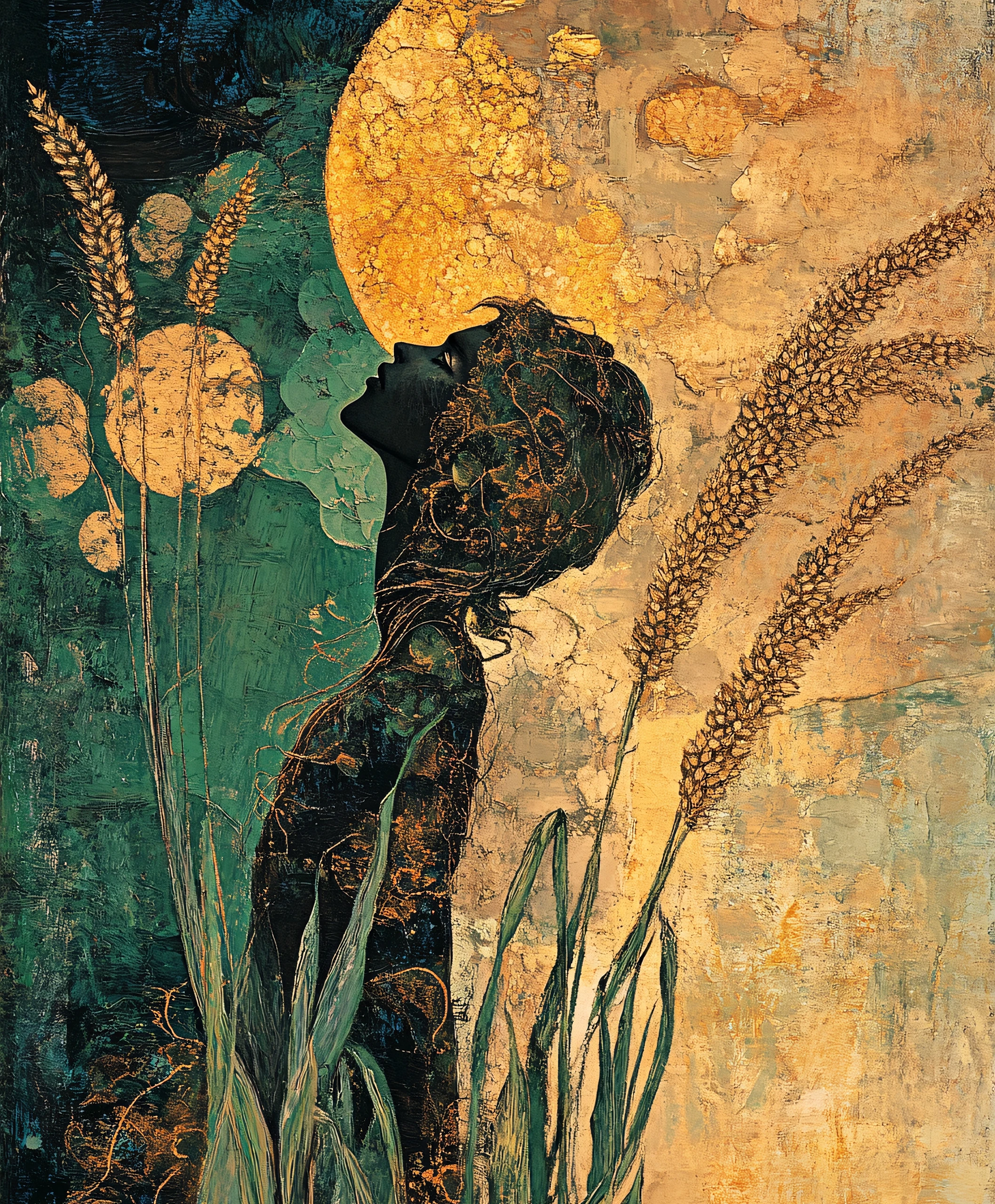 Le blé, symbole d’élévation, de soleil, et de moisson y a une place prédominante.